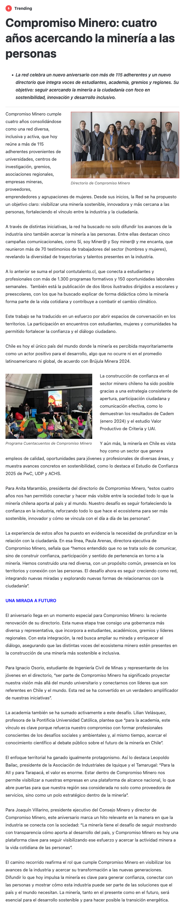 Compromiso Minero cumple 4 años con nuevo directorio - (chilepaisminero.com)