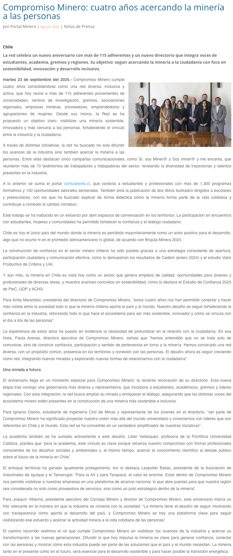 Compromiso Minero: cuatro años acercando la minería a las personas - (atacamarectv.cl)