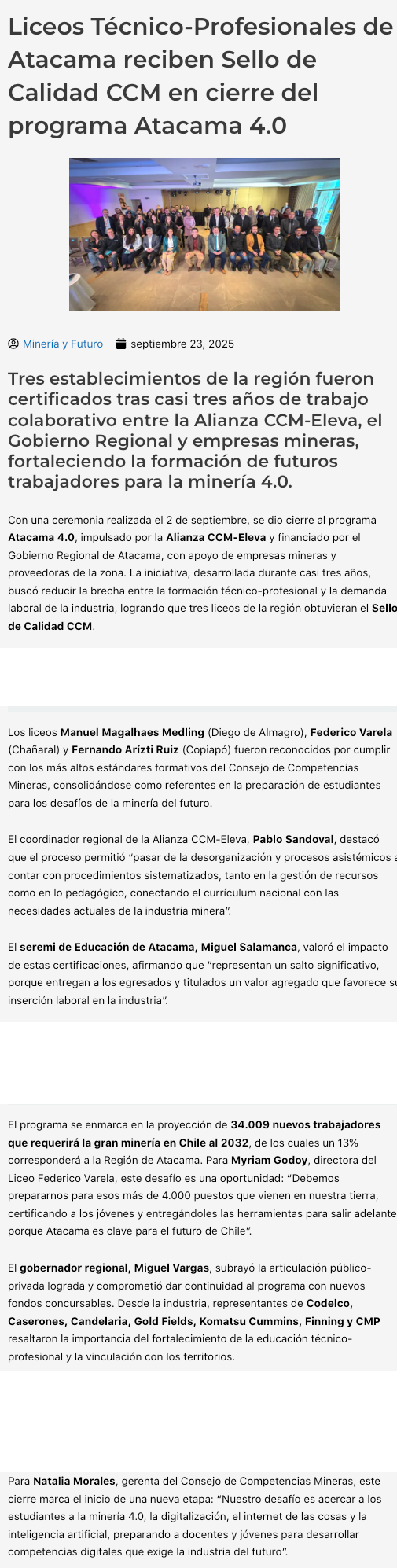 Liceos Técnico Profesional de la región obtienen Sello de Calidad CCM en el cierre del programa FIC Atacama 4.0 - (fch.cl)