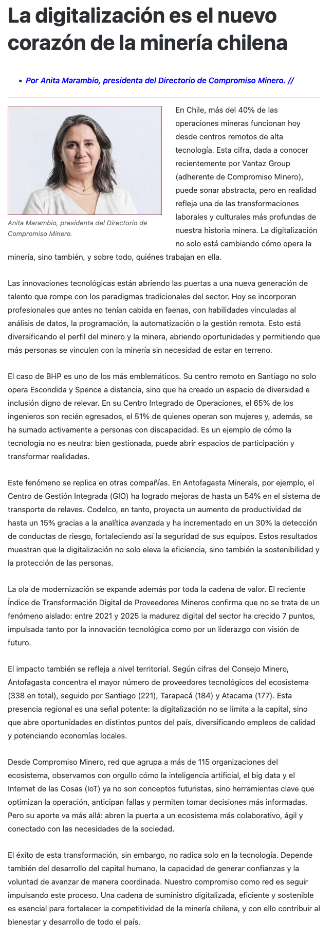 La digitalización es el nuevo corazón de la minería chilena - (portalinnova.cl)