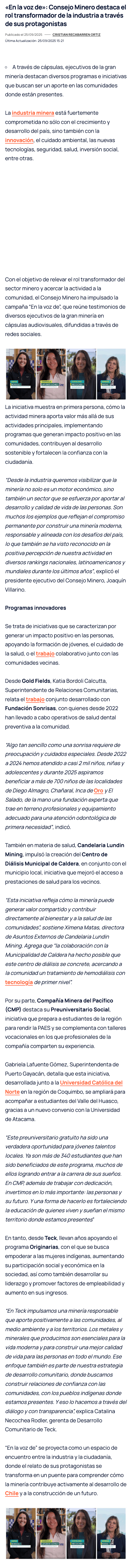 «En la voz de»: Consejo Minero destaca el rol transformador de la industria a través de sus protagonistas - (minerialocal.cl)