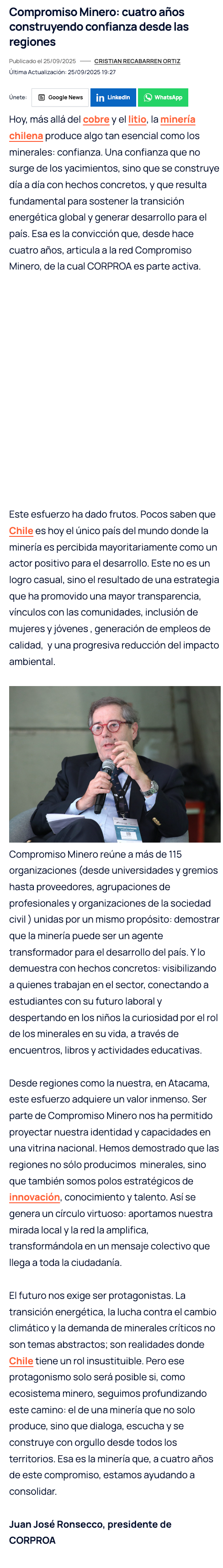 Compromiso Minero: cuatro años construyendo confianza desde las regiones - (El Chañarcillo)