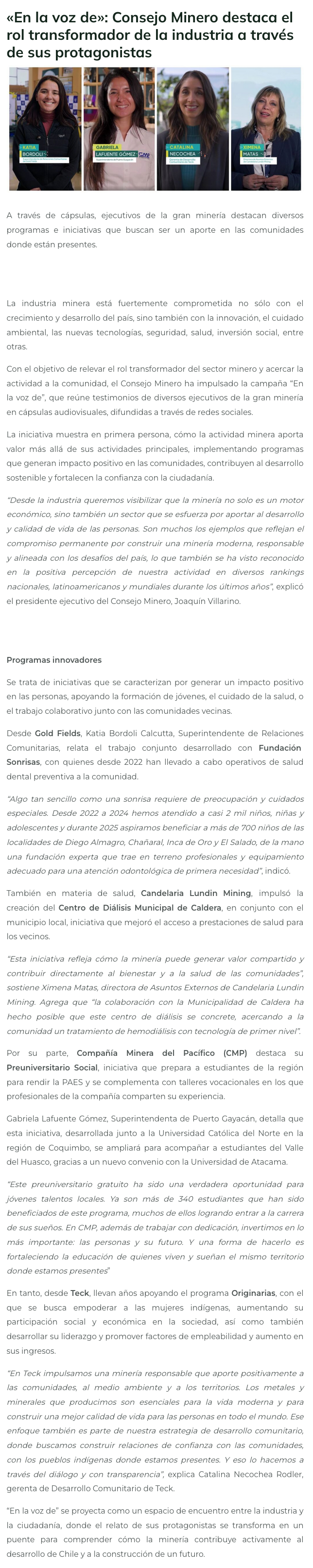 «En la voz de»: Consejo Minero destaca el rol transformador de la industria a través de sus protagonistas - (lavozdelamineria.cl)