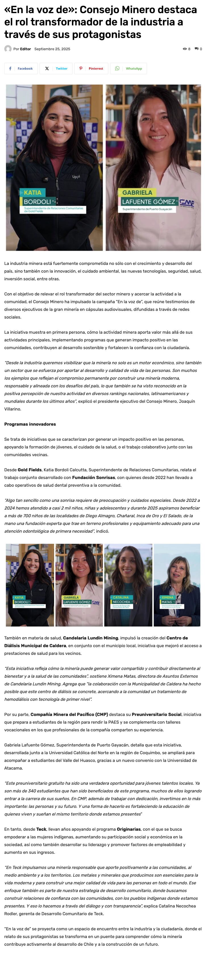 «En la voz de»: Consejo Minero destaca el rol transformador de la industria a través de sus protagonistas - (minerialocal.cl)