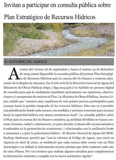 DGA invita a la comunidad al primer Plan Estratégico de Recursos Hídricos - (El Diario de Atacama)
