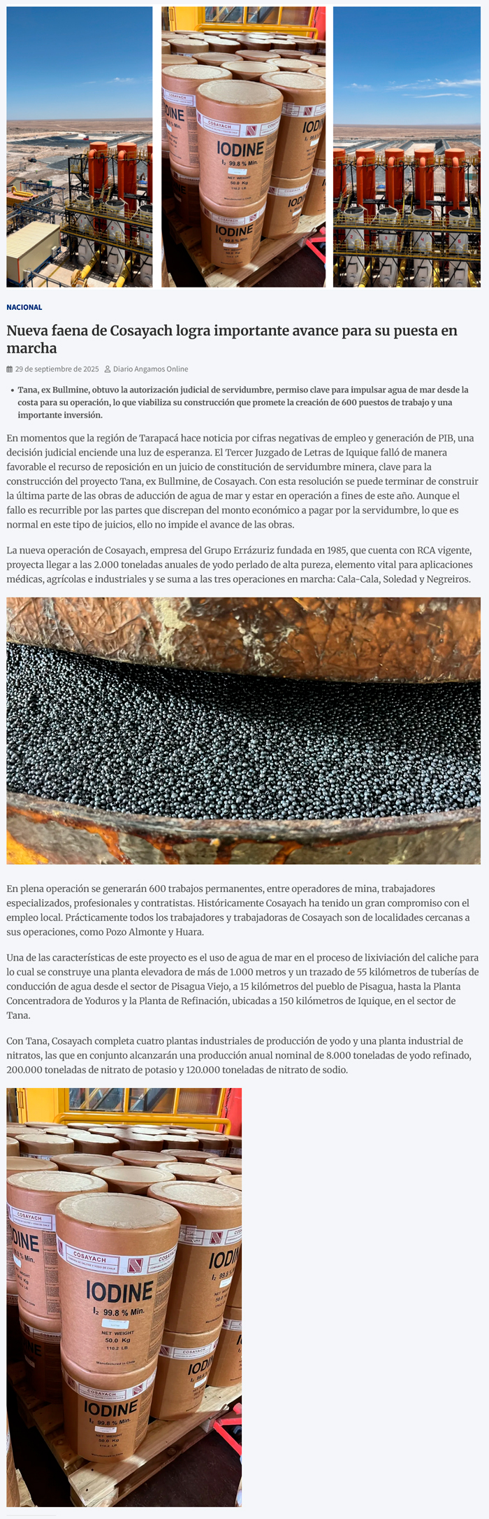Nueva faena de Cosayach logra avance para puesta en marcha - (Estrella de Iquique)