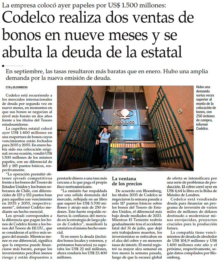 Codelco cierra reapertura de bonos - (Pulso)
