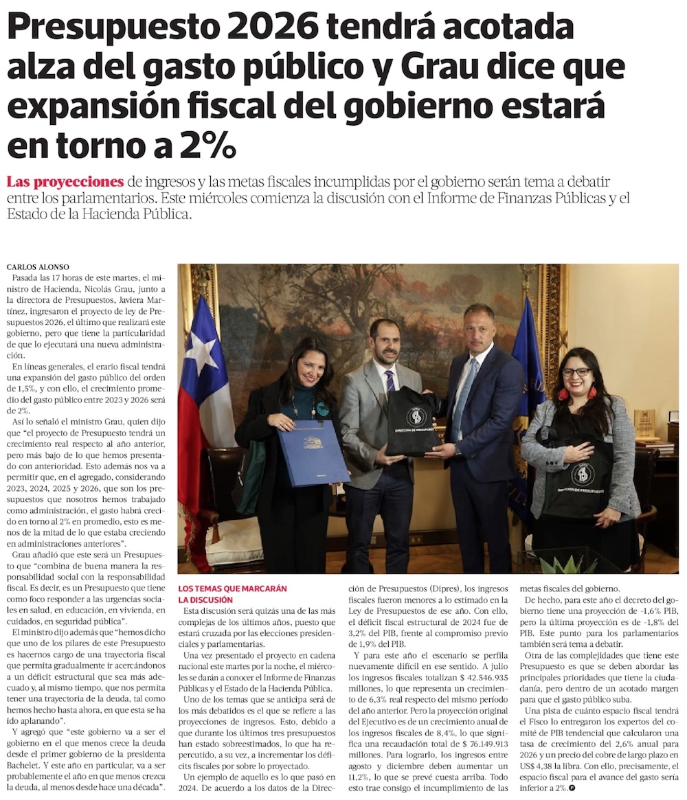 Boric propone Presupuesto 2026 con un alza del gasto de 1,7% y utiliza discurso oficial para criticar plan fiscal de Kast - (Diario Financiero)