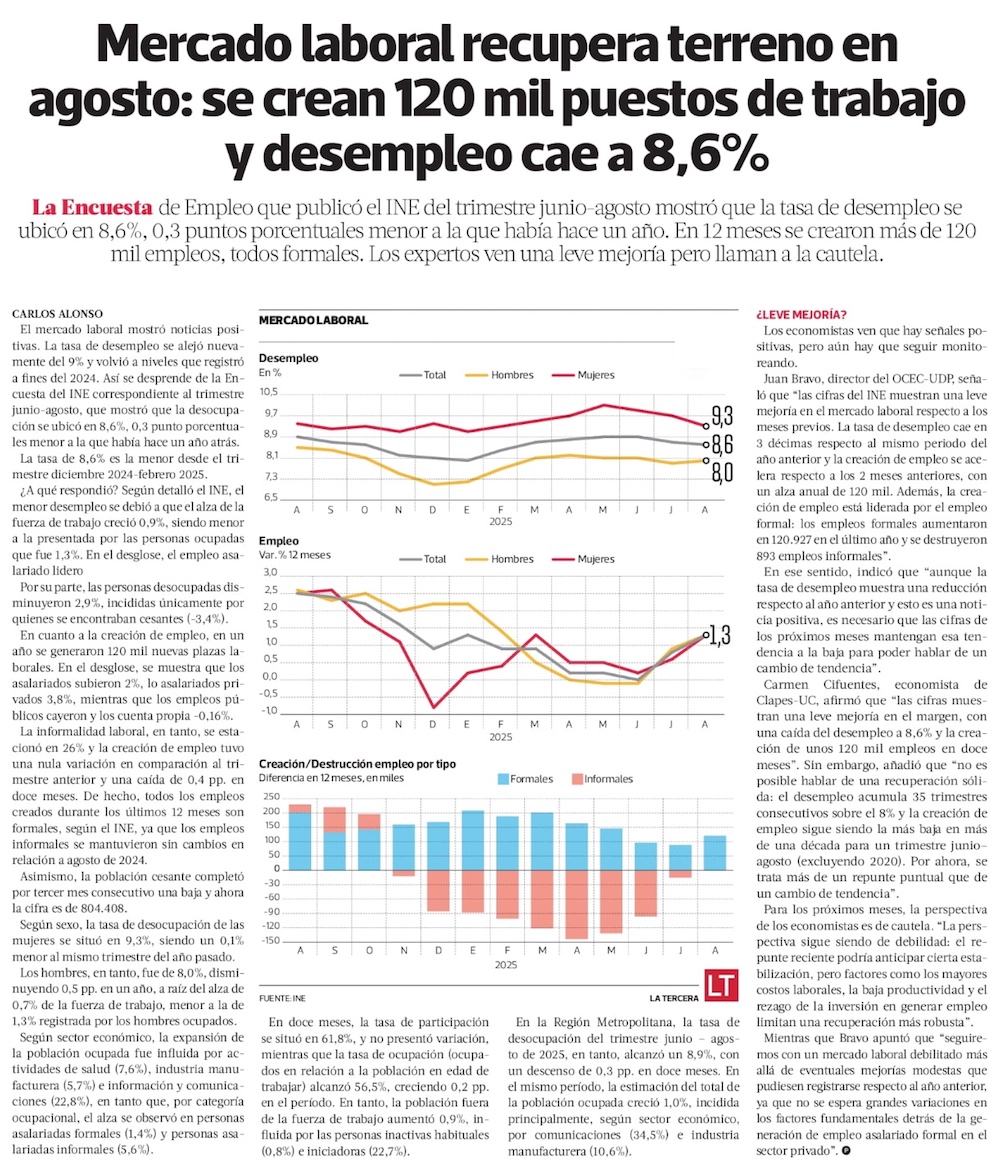 Se frena alza de la desocupación en el país, pero analistas alertan sobre la calidad del empleo que se está creando - (Diario Financiero)