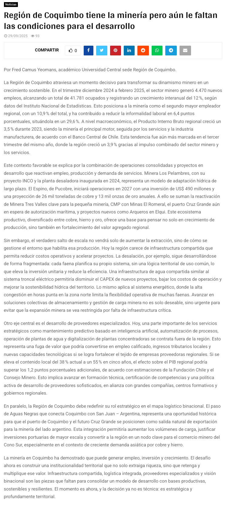 Región de Coquimbo tiene la minería pero aún le faltan las condiciones para el desarrollo - (tierramarillano.cl)