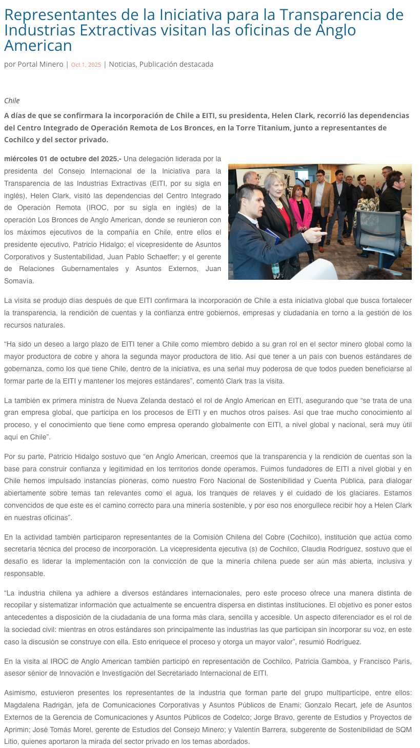 Representantes de la Iniciativa para la Transparencia de Industrias Extractivas visitan las oficinas de Anglo American - (redimin)