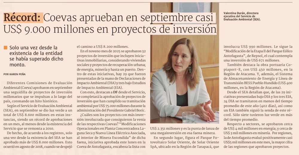 SEA reporta en septiembre monto récord en los proyectos de inversión aprobados - (La Tercera Online)