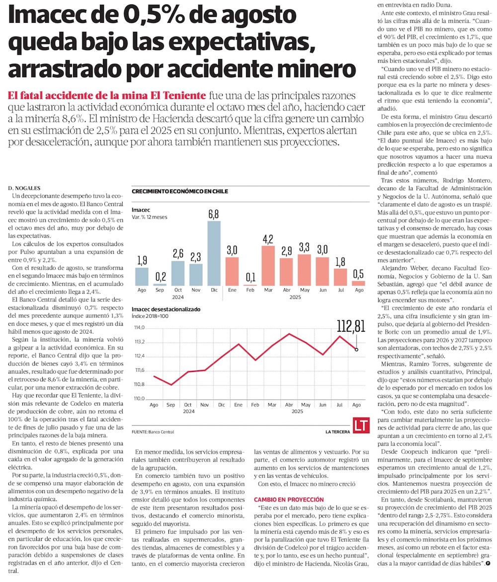 ¿Se logra el 2,5%? Decepcionante desempeño de la economía en agosto divide al mercado de cara a fin de año - (Diario Financiero)