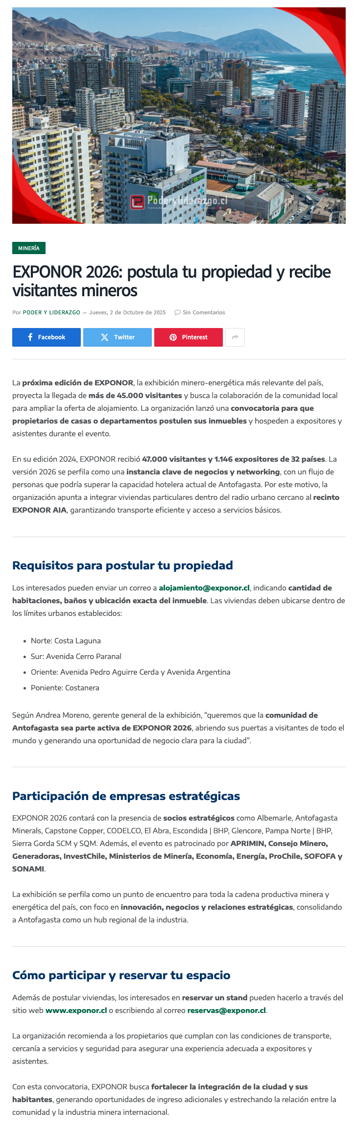 Exponor 2026: Organización lanza convocatoria para que propietarios postulen sus inmuebles como hospedaje - (mch.cl)