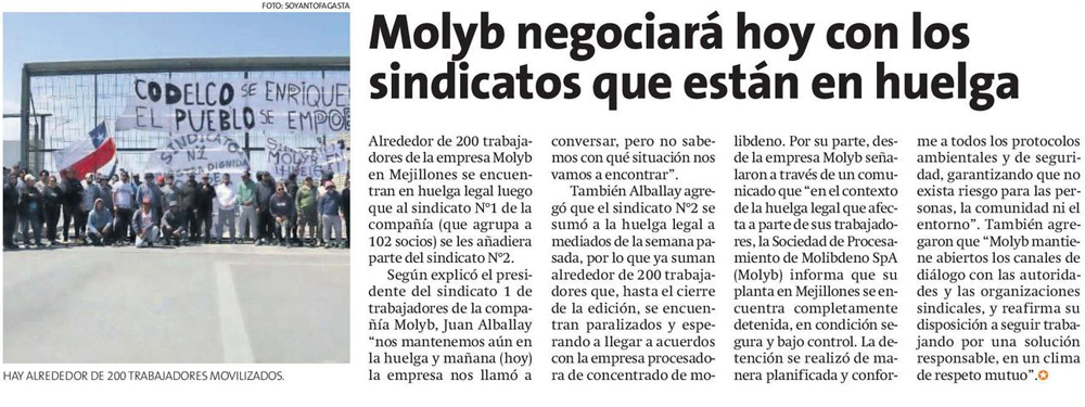 MOLYB reafirma que su planta en Mejillones está detenida, segura y bajo control - (region2)