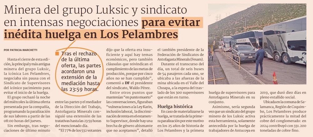 Sindicato de supervisores de Minera Los Pelambres está ad portas de irse a huelga - (El Mercurio de Santiago)