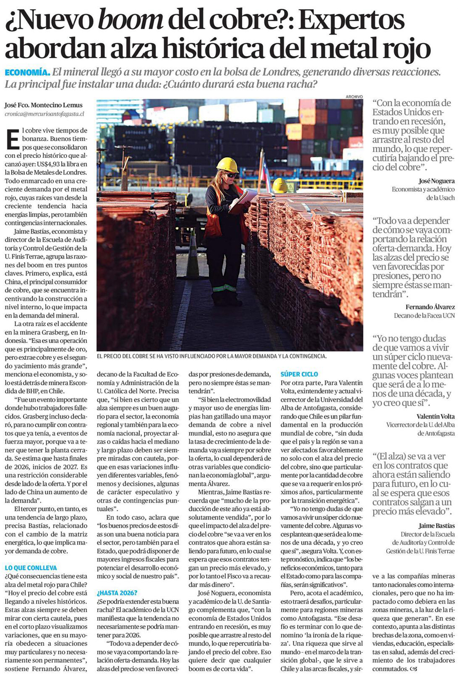 Cobre cierra en récord histórico, bordea los US$5 y podría sumar más de US$2.000 millones al Fisco en 2026 si mantiene estos niveles - (Pulso)