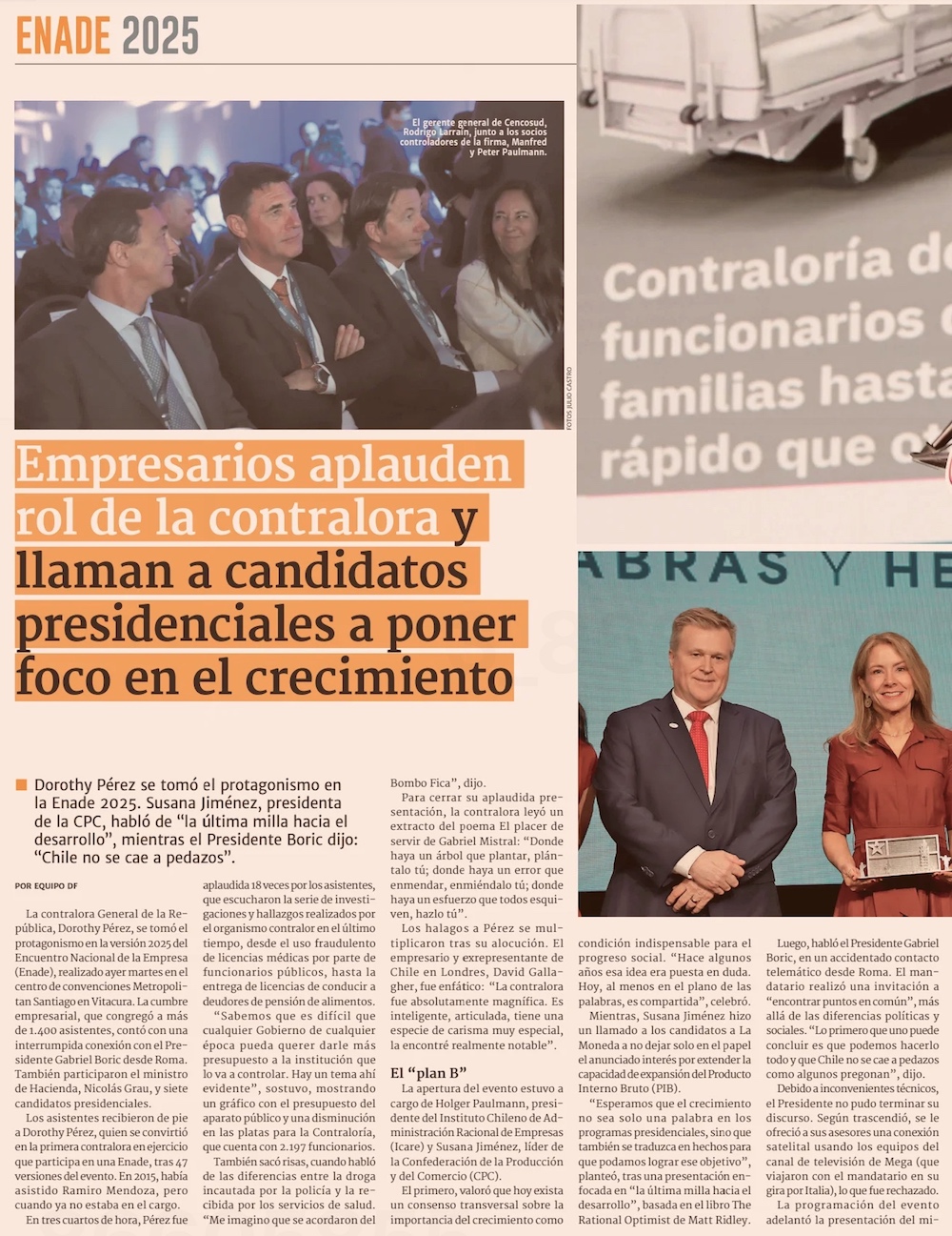 Dorothy Pérez es ovacionada y se convierte en la estrella de Enade: “Es una funcionaria que hace la pega” - (El Mercurio de Santiago)