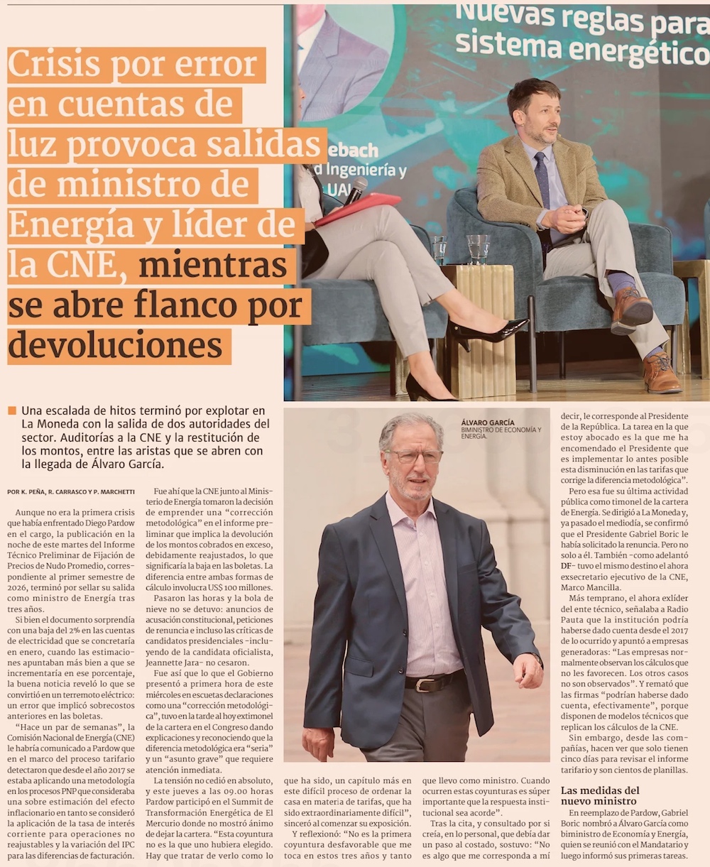 Presidente Boric remueve a Pardow para intentar frenar impacto de crisis de la luz en la candidata de su sector - (El Mercurio de Santiago)