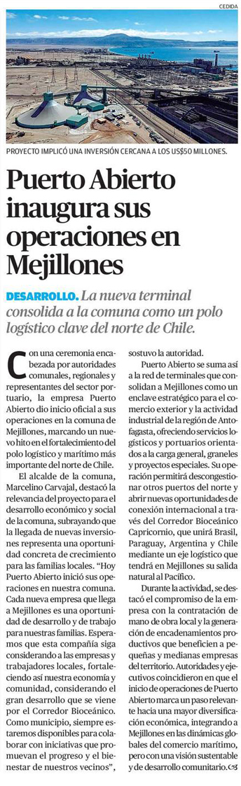 Puerto Abierto inaugura sus operaciones en Mejillones y analiza nuevos proyectos para carga de minerales críticos - (soyantofagasta)