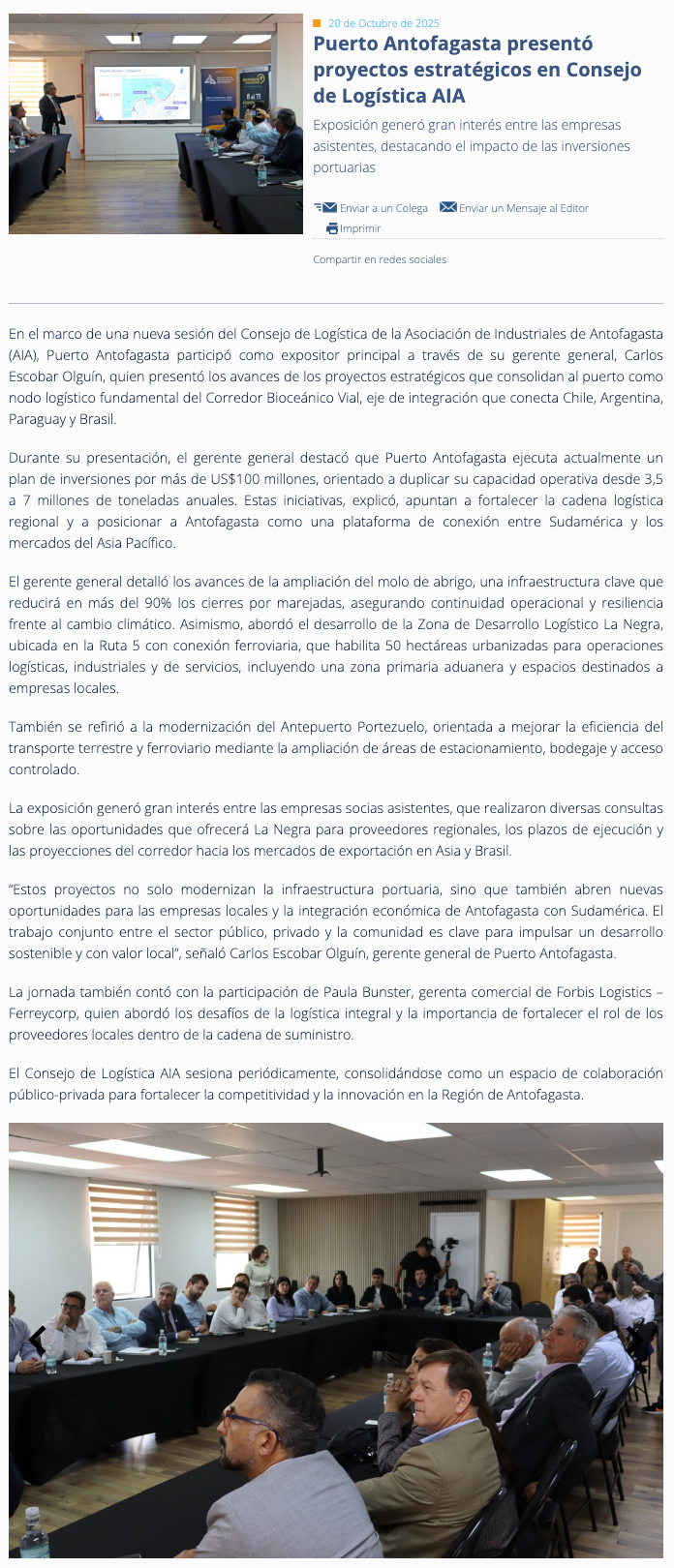 Puerto Antofagasta presenta sus proyectos estratégicos en el consejo de logística de la AIA - (resonanciadiario.cl)