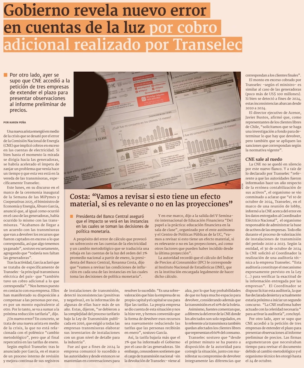 La historia de los otros US$100 millones: El sobrecosto de Transelec que también significó un alza injustificada en las cuentas de la luz - (Pulso)