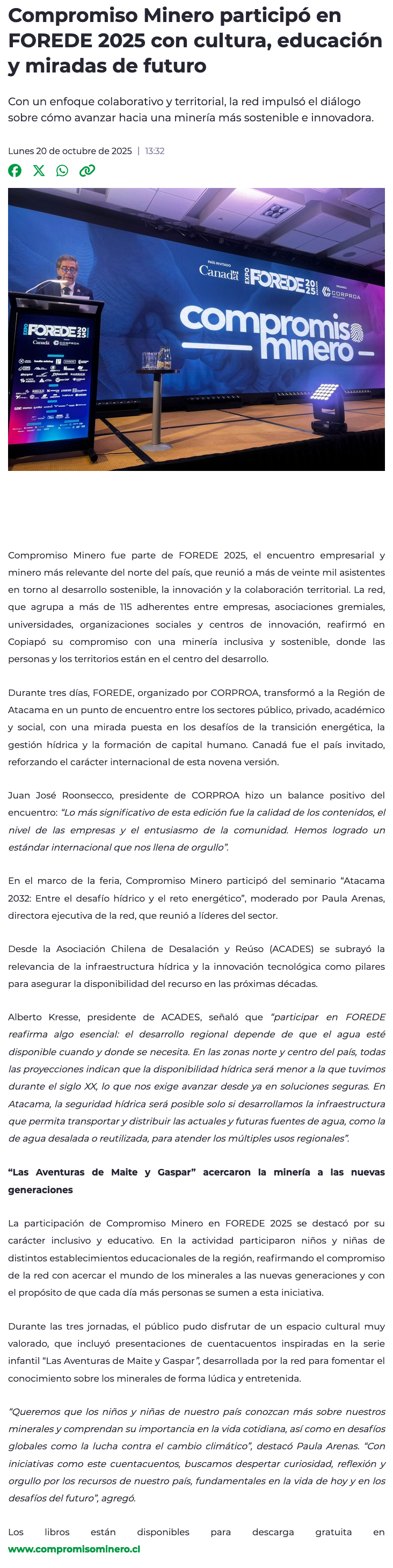 Compromiso Minero participó en FOREDE 2025 con cultura, educación y miradas de futuro - (atacamaenlinea.cl)