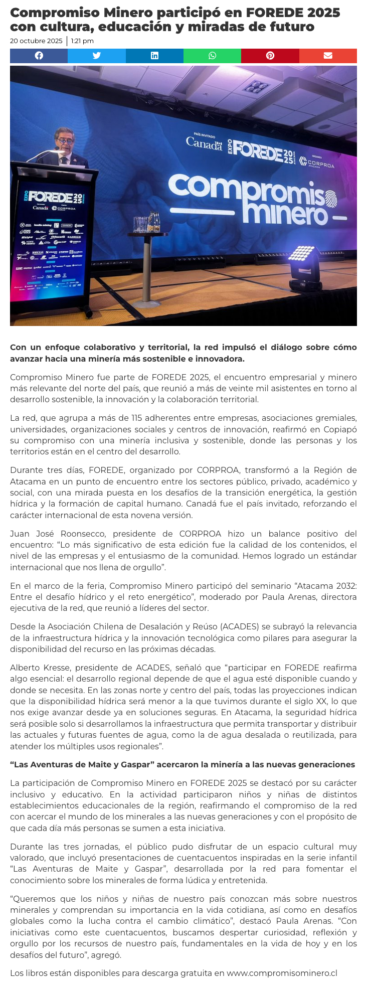 Compromiso Minero participó en FOREDE 2025 con cultura, educación y miradas de futuro - (atacamaenlinea.cl)