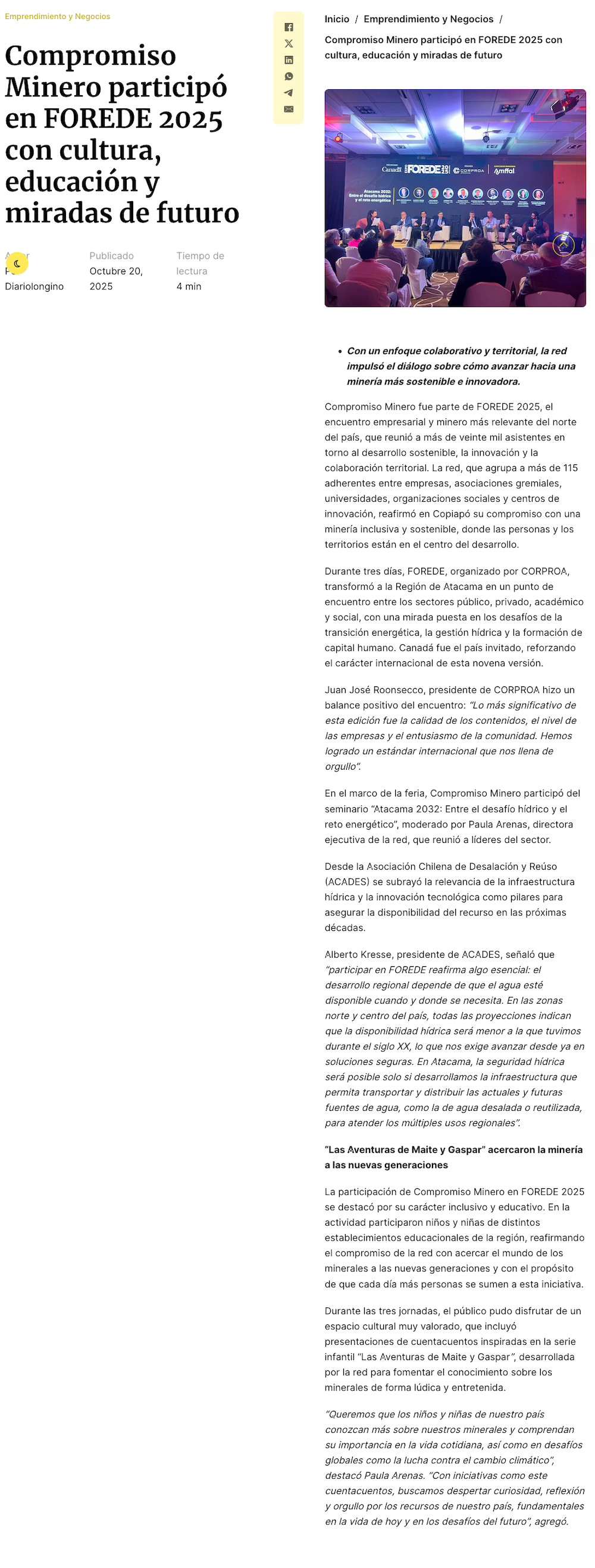 Compromiso Minero participó en FOREDE 2025 con cultura, educación y miradas de futuro - (fmcandelaria.cl)