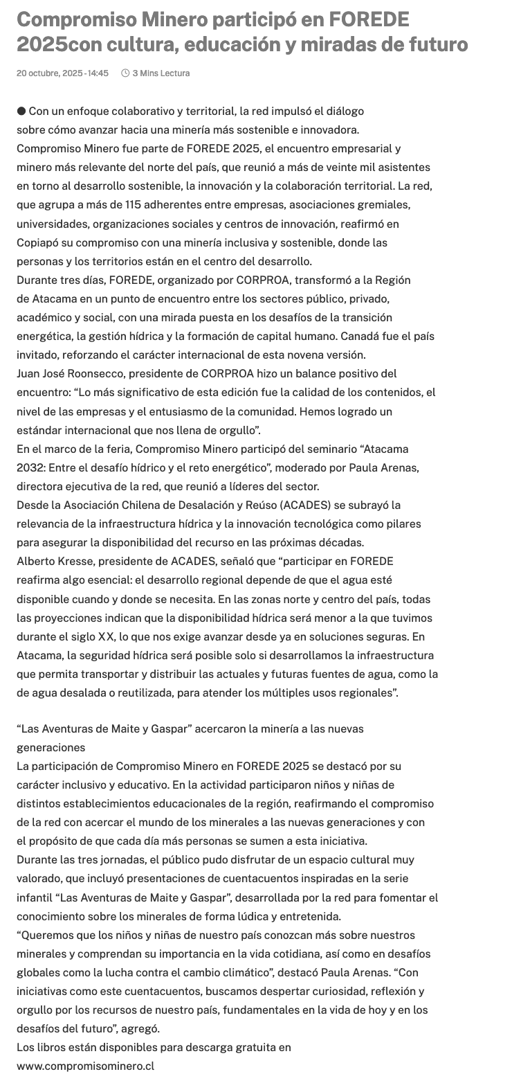 Compromiso Minero participó en FOREDE 2025 con cultura, educación y miradas de futuro - (atacamaenlinea.cl)