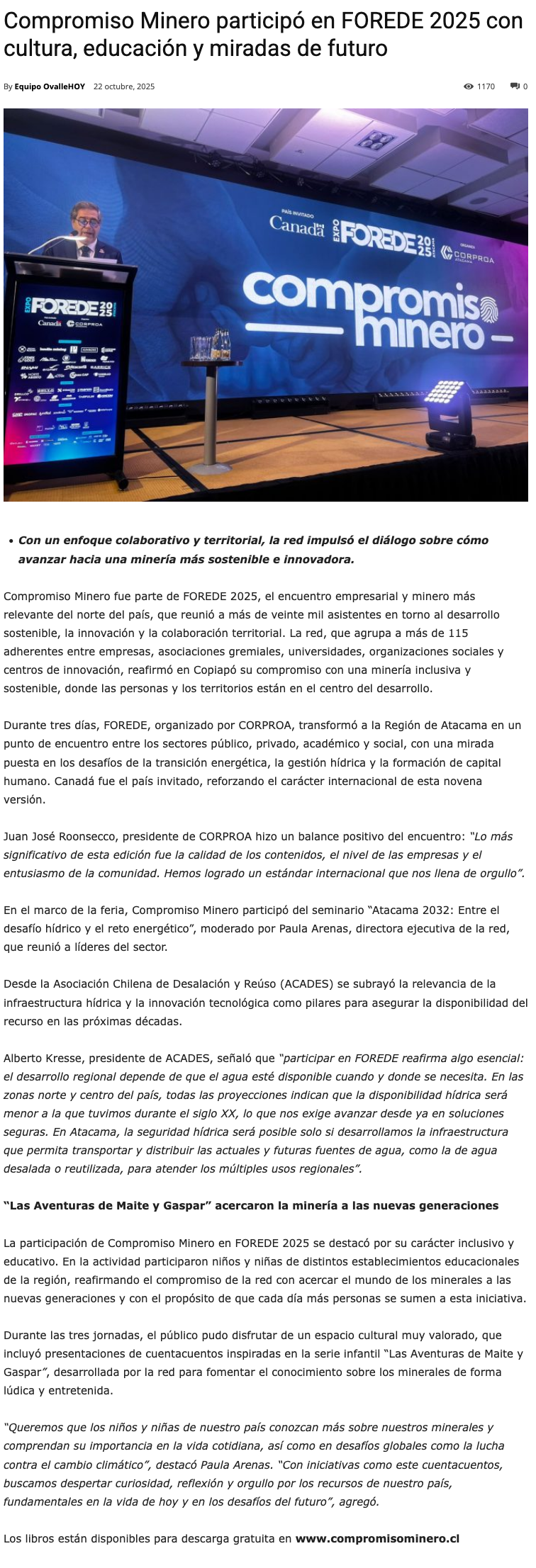 Compromiso Minero participó en FOREDE 2025 con foco en cultura, educación y sostenibilidad - (mineriayfuturo.cl)