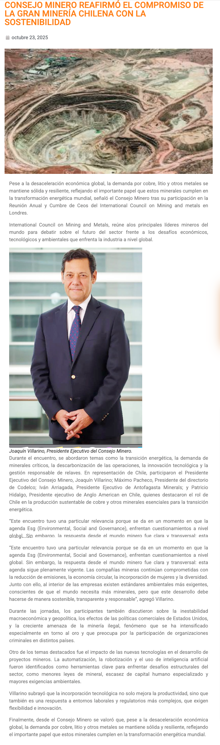 Consejo Minero reafirmó compromiso de la gran minería chilena con la sostenibilidad en encuentro del ICMM en Londres - (tierramarillano.cl)