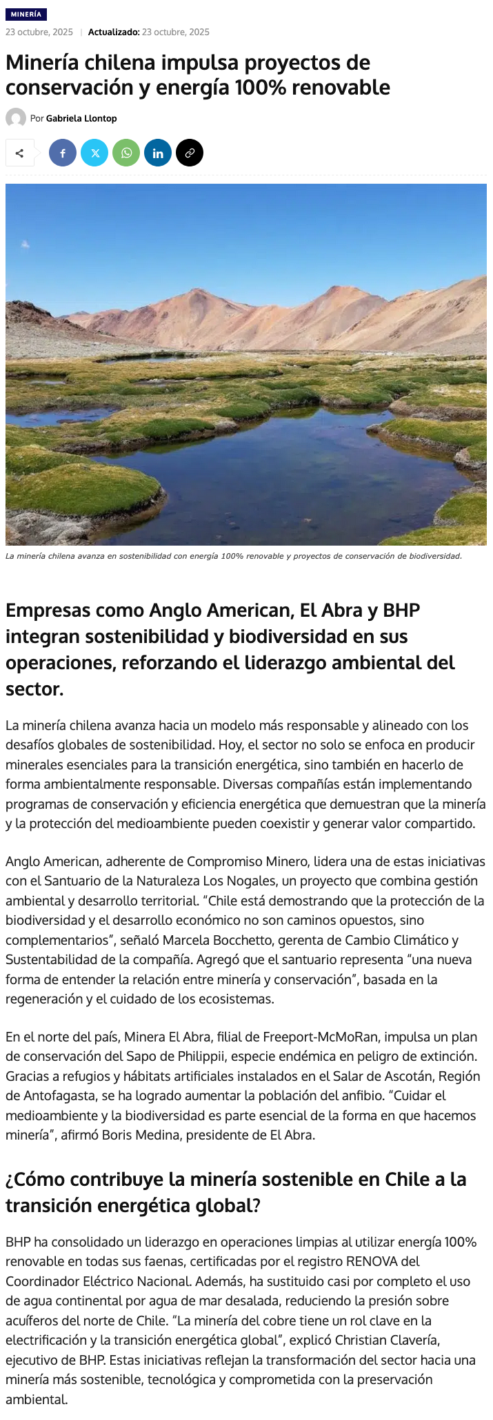 Compromiso Minero destaca avances del sector en la protección del medio ambiente y la biodiversidad - (diarioangamos)