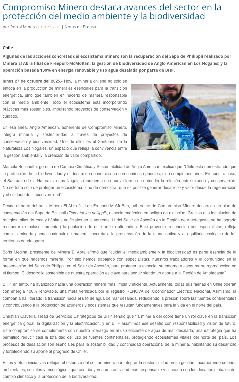 Compromiso Minero destaca avances del sector en la protección del medio ambiente y la biodiversidad - (tierramarillano.cl)