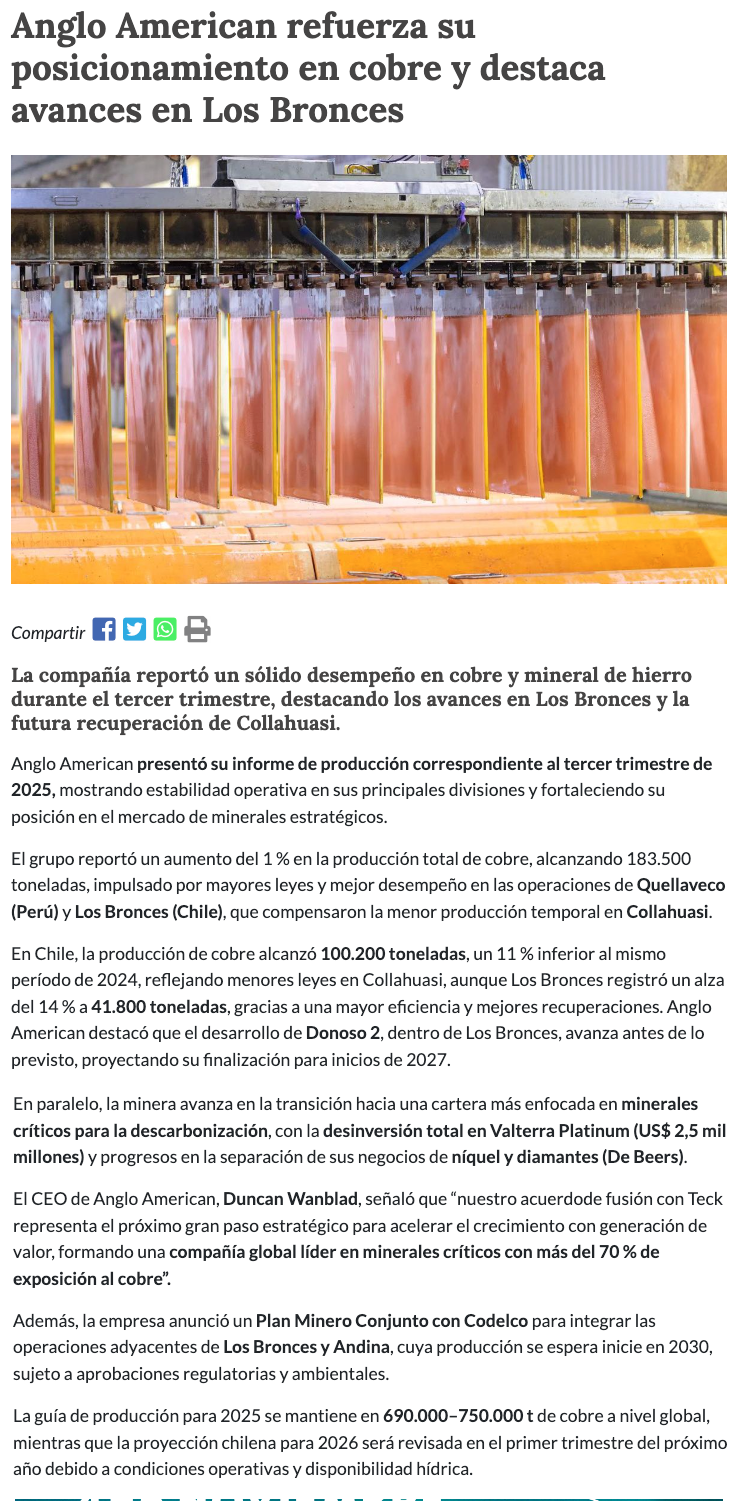 Cae resultado de Anglo arrastrado por Collahuasi - (El Mercurio de Santiago)