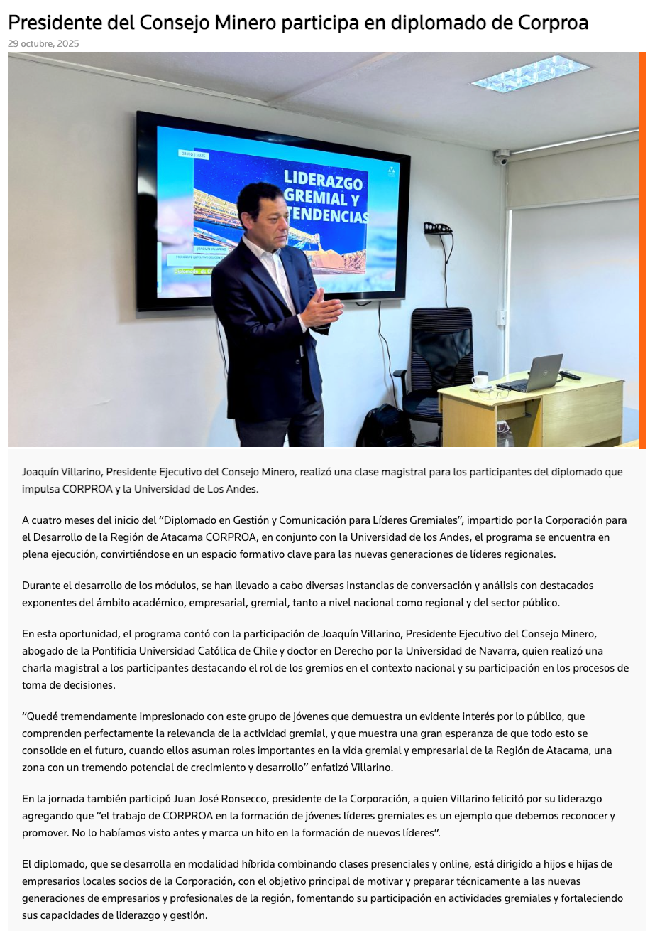 Presidente del Consejo Minero participa en diplomado de CORPROA - (portalVallenarDigital.cl)