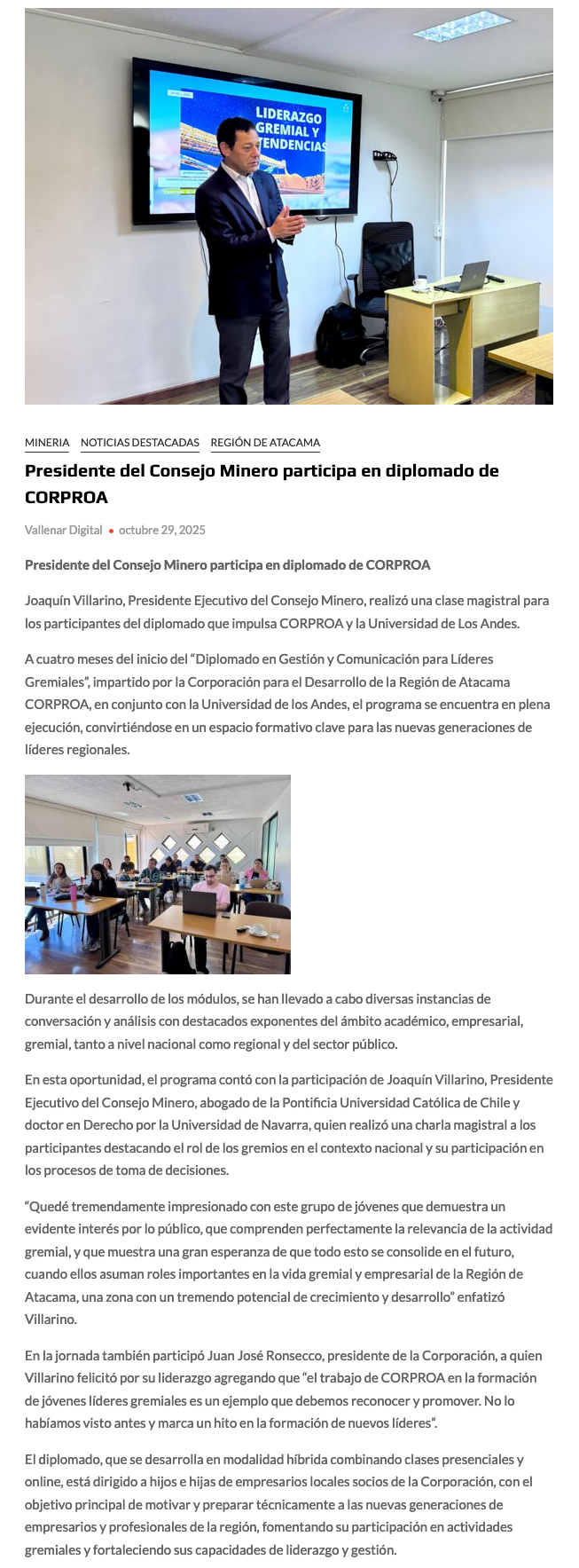 Presidente del Consejo Minero participa en diplomado de Corproa - (nuevaminería online)