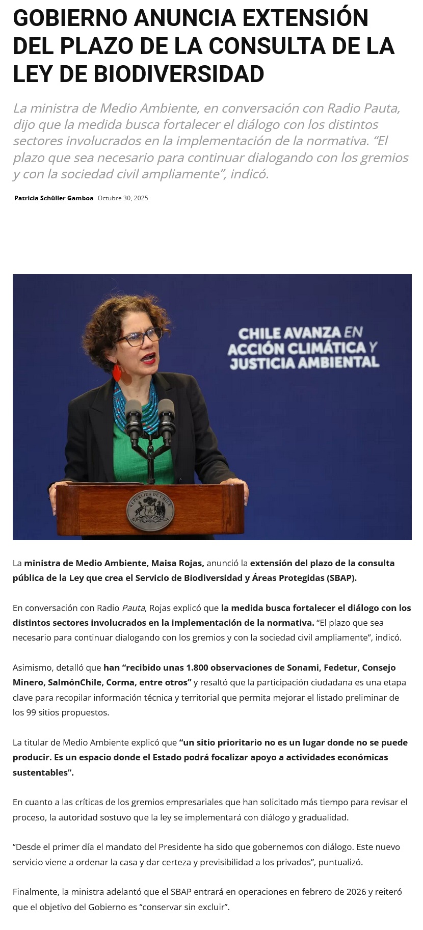 Gobierno extiende plazo de consulta pública para Ley de Biodiversidad - (publimicro.cl)