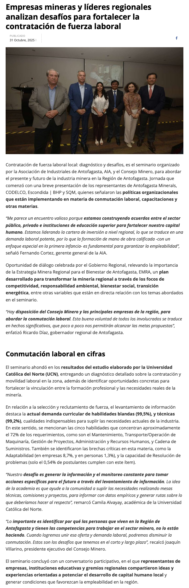 Mineras expusieron programas para fortalecer contratación de fuerza laboral local en la Región de Antofagasta - (revistacrisol.cl)