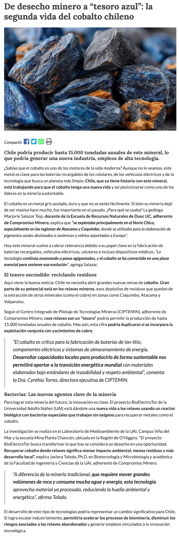 De desecho minero a “tesoro azul”: la segunda vida del cobalto chileno y su rol para un futuro sostenible - (regionesnoticias.cl)