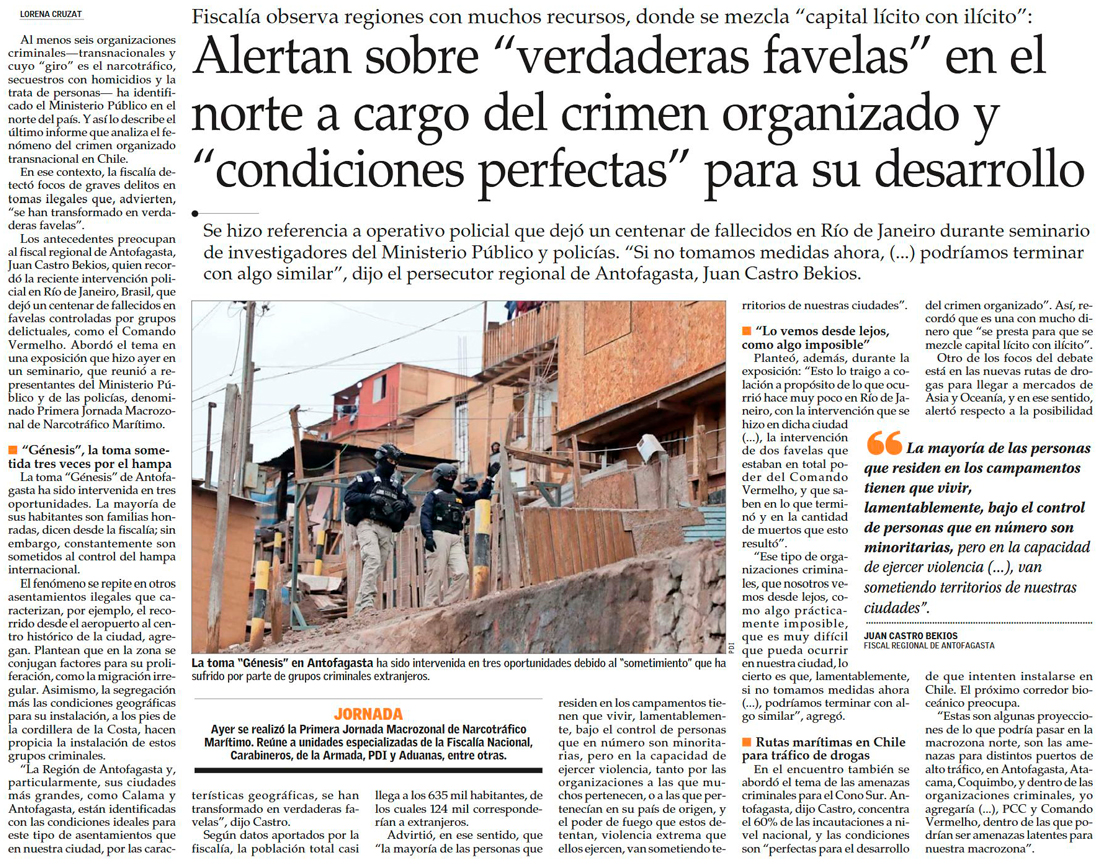 Fiscalía alerta sobre la "favelización" de campamentos y la amenaza del narcotráfico marítimo en la región - (El Mercurio de Antofagasta)
