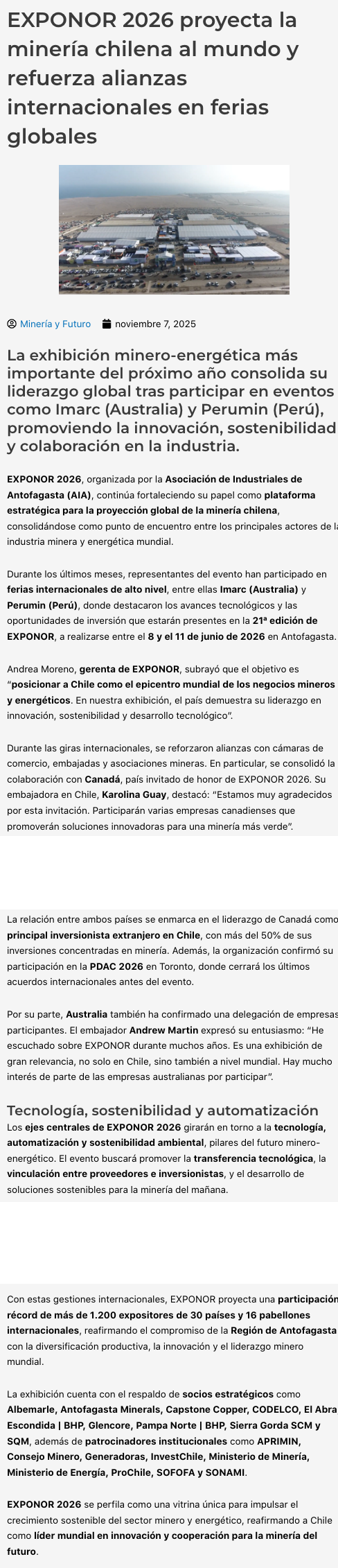 mineriayfuturo.cl - Viernes, 7 de Noviembre de 2025