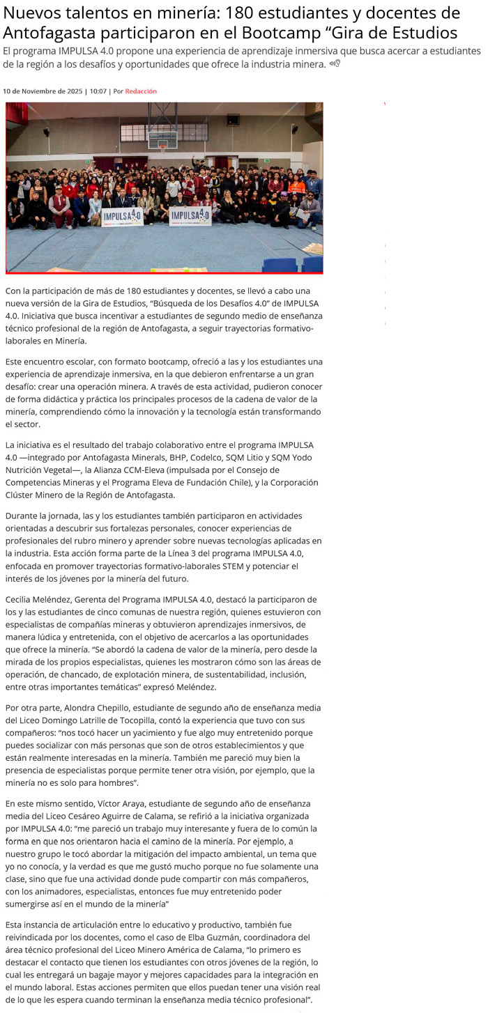 Más de 180 estudiantes y docentes de la Región de Antofagasta vivieron el Bootcamp “Gira de Estudios: Búsqueda de los Desafíos 4.0 organizado por IMPULSA 4.0 - (mvcomunicaciones.cl)