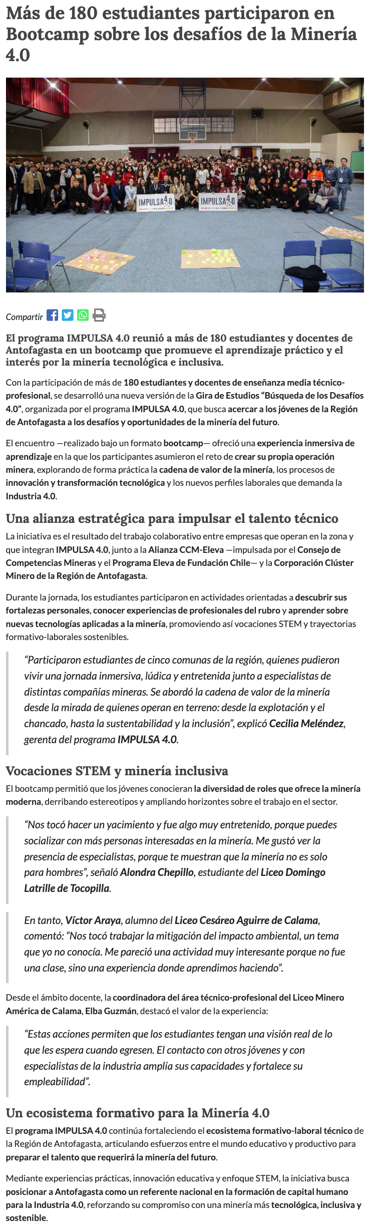 Más de 180 estudiantes y docentes de la Región de Antofagasta vivieron el Bootcamp “Gira de Estudios: Búsqueda de los Desafíos 4.0 organizado por IMPULSA 4.0 - (mvcomunicaciones.cl)