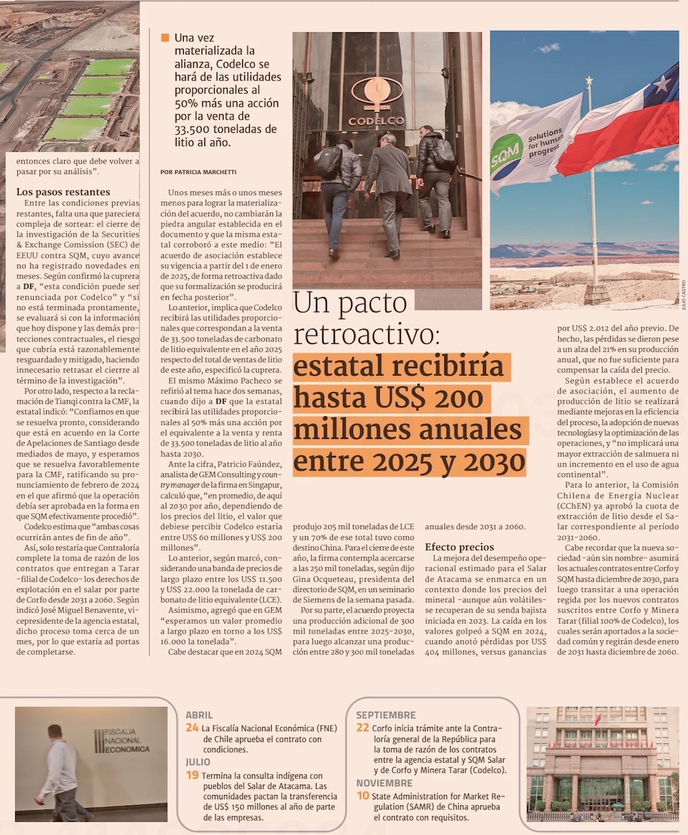 Codelco y SQM finalmente reciben la aprobación del regulador de China para su acuerdo de asociación por el litio - (La Tercera Online)
