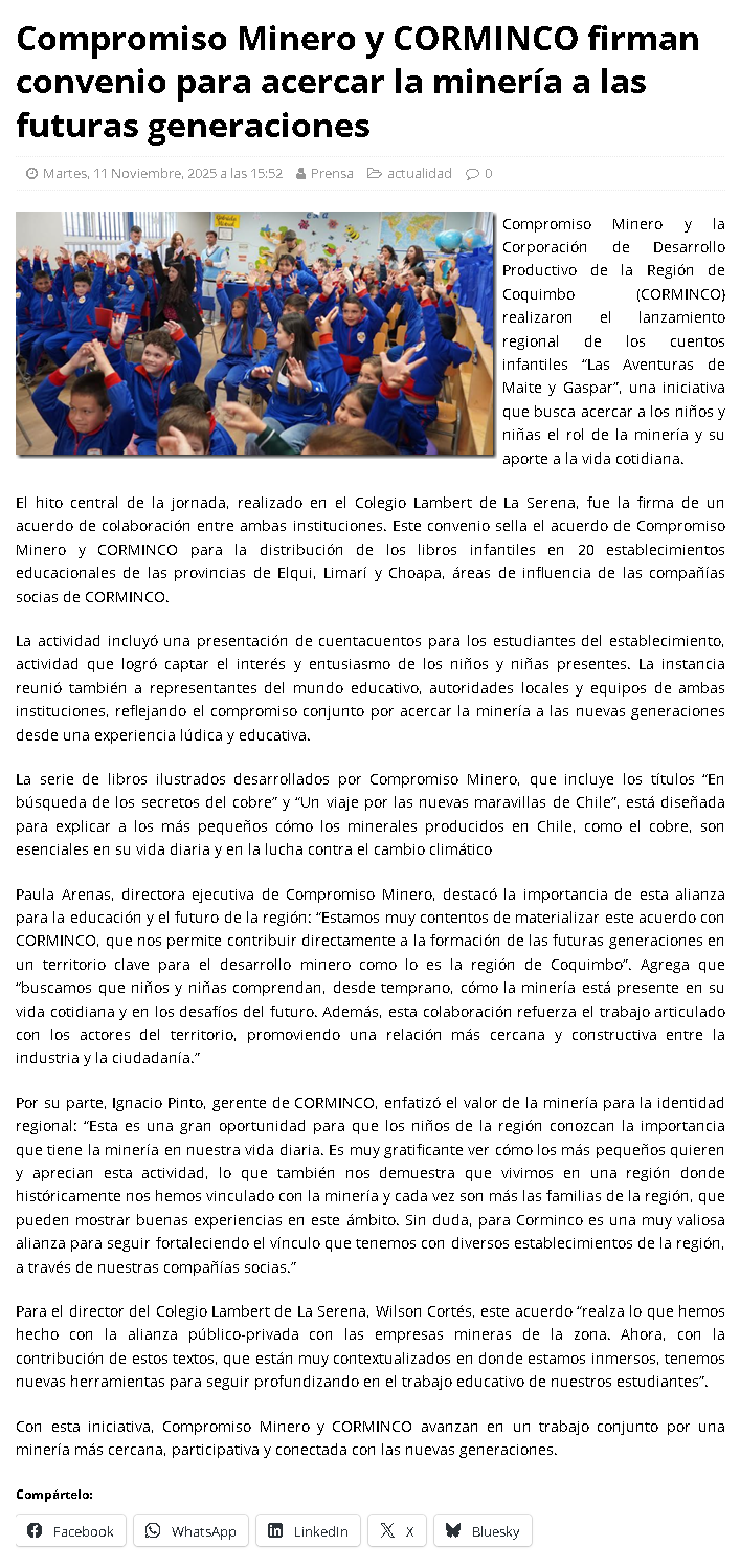 Compromiso Minero y Corminco firmaron convenio en la serena para acercar la minería a las nuevas y futuras generaciones - (revistacrisol.cl)