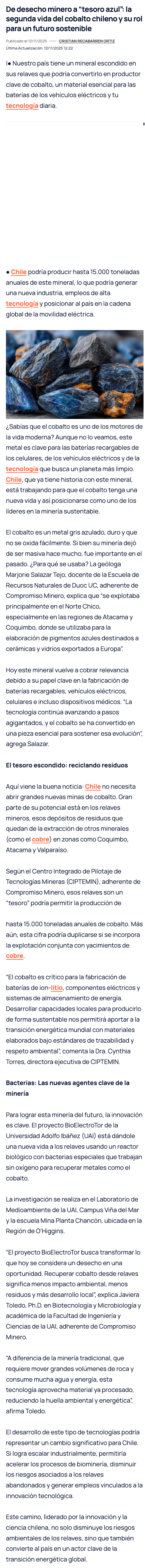 De desecho minero a “tesoro azul”: la segunda vida del cobalto chileno y su rol para un futuro sostenible - (reportesostenible.cl)