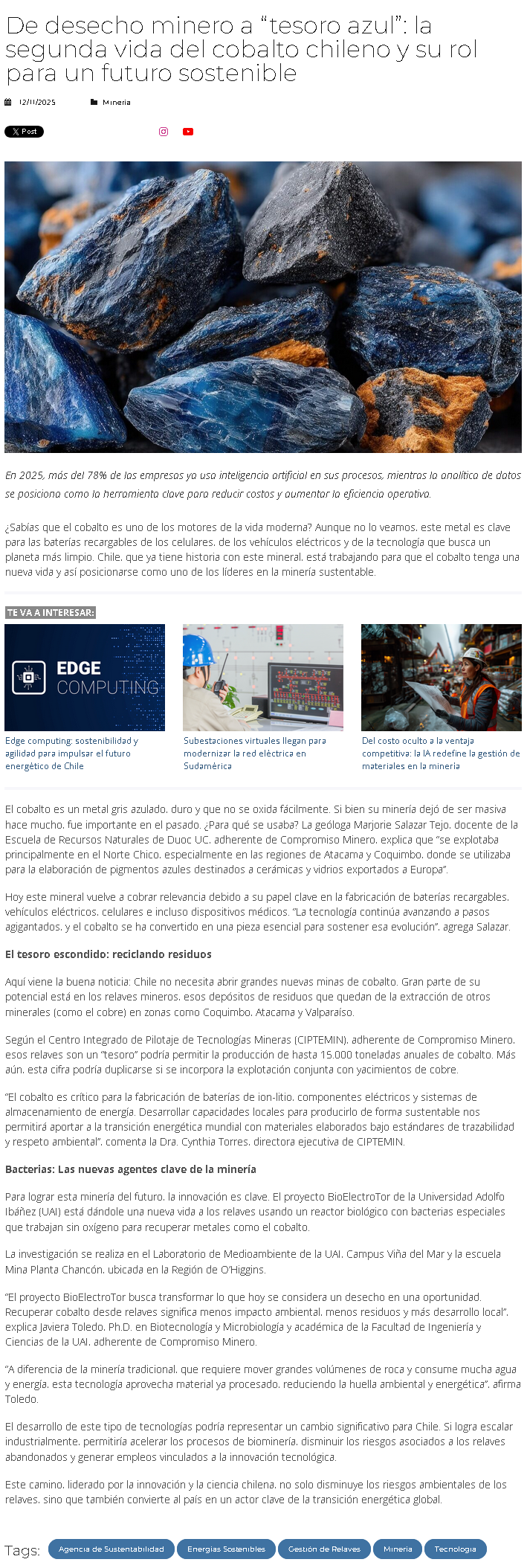 De desecho minero a “tesoro azul”: la segunda vida del cobalto chileno y su rol para un futuro sostenible - (redimin)