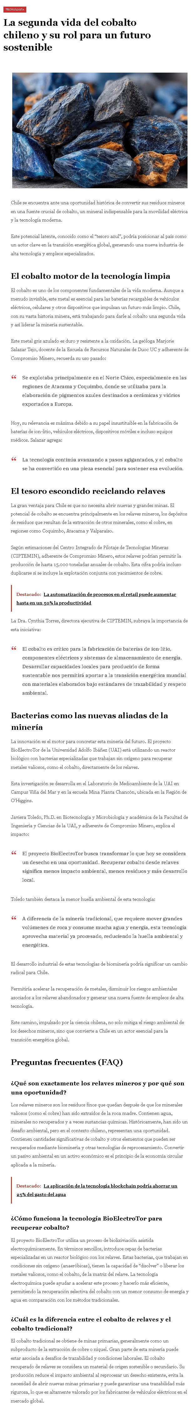 De desecho minero a “tesoro azul”: la segunda vida del cobalto chileno y su rol para un futuro sostenible - (mediabanco.cl)