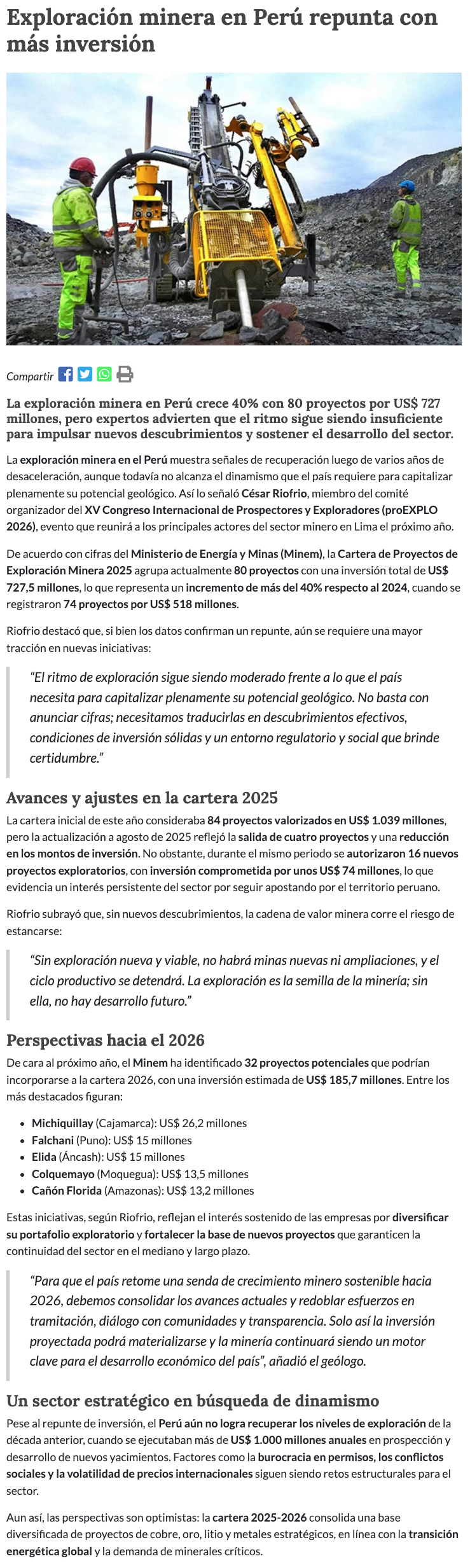 reporteminero - Jueves, 13 de Noviembre de 2025